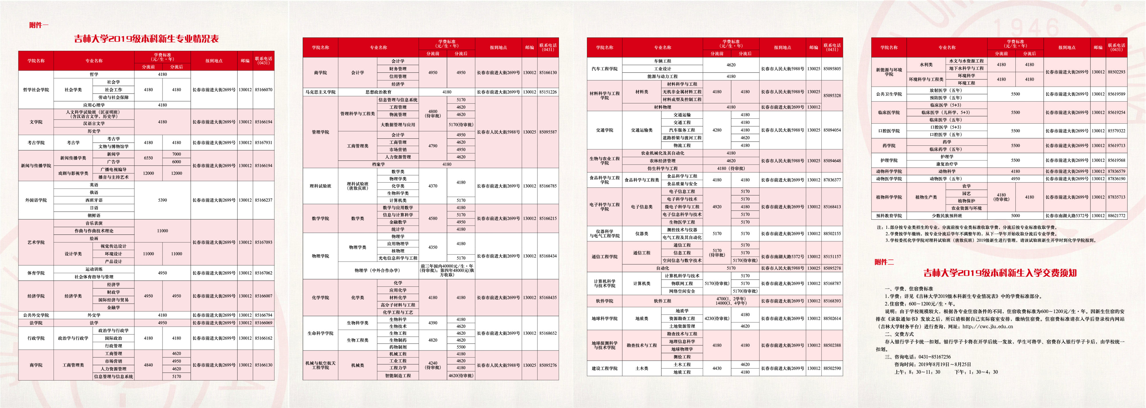 吉林大学2019年普通本科新生入学须知