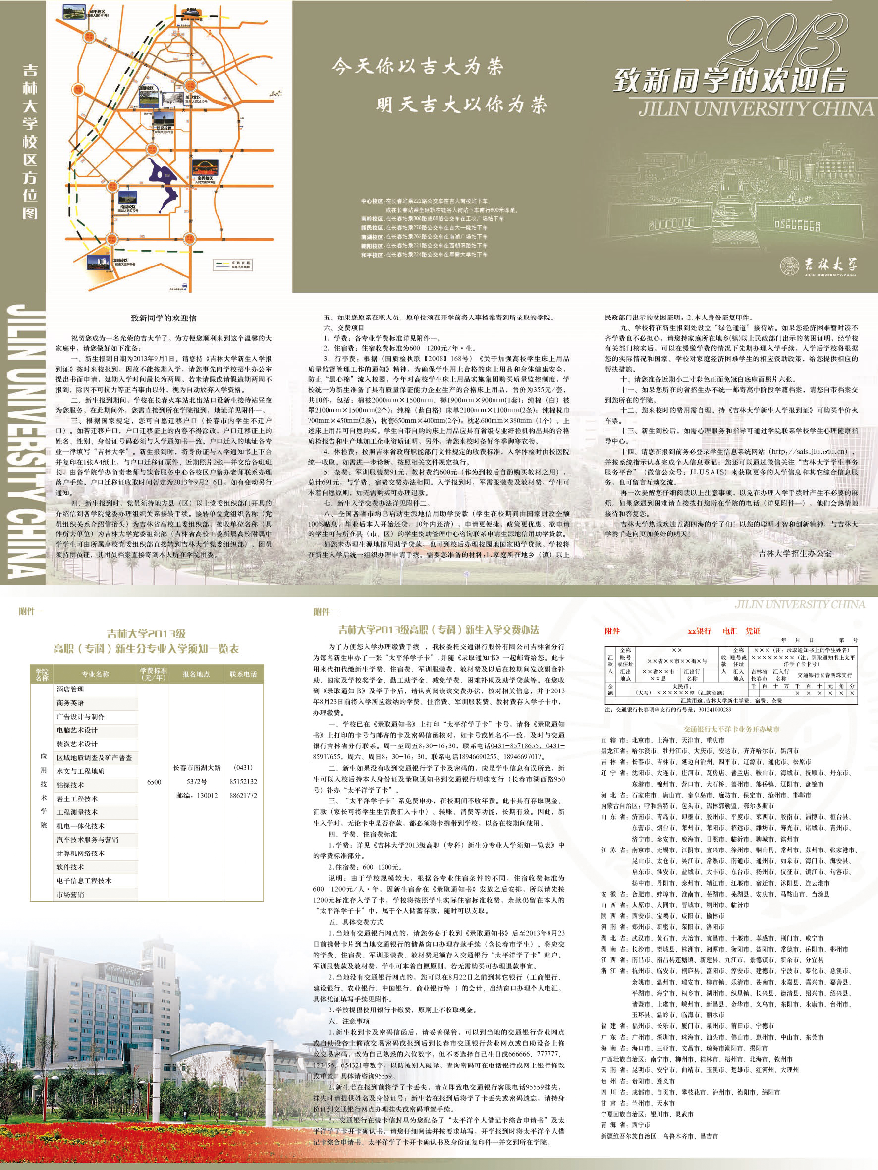 祝贺您成为一名光荣的吉大学子。为方便您顺利来到这个温馨的大家庭中,请您做好如下准备:
