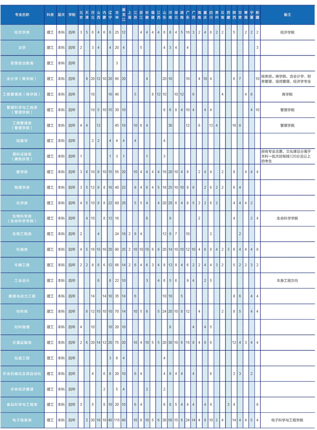 分批次、分科类招生计划