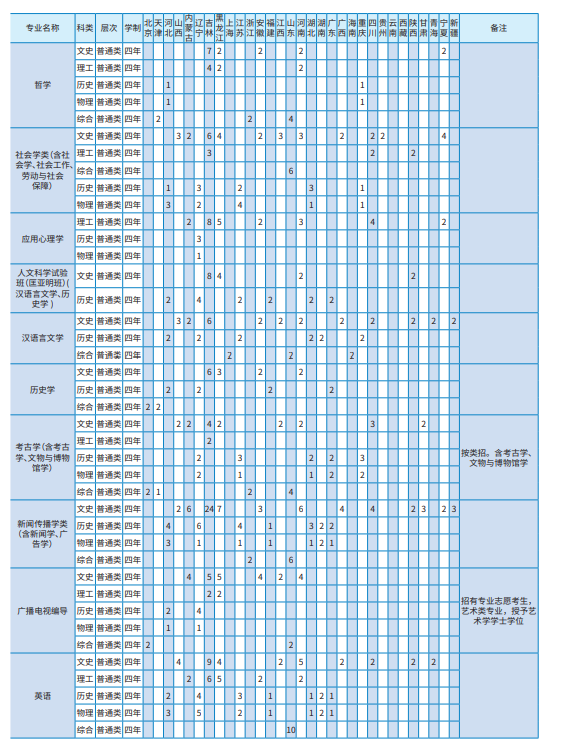 分批次、分科类招生计划