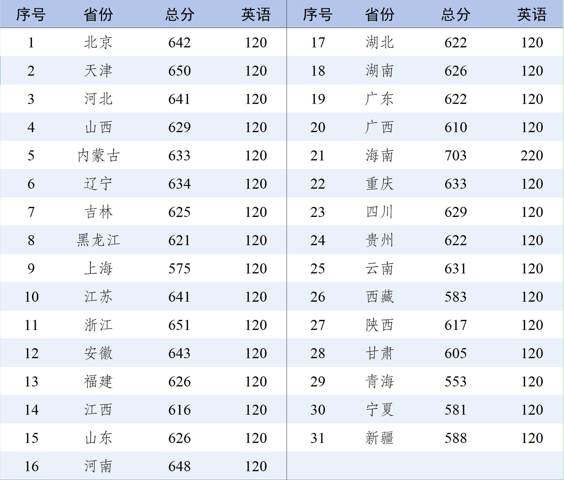 5.满足高考总分分数线和英语单科分数要求,具体分数要求如下: