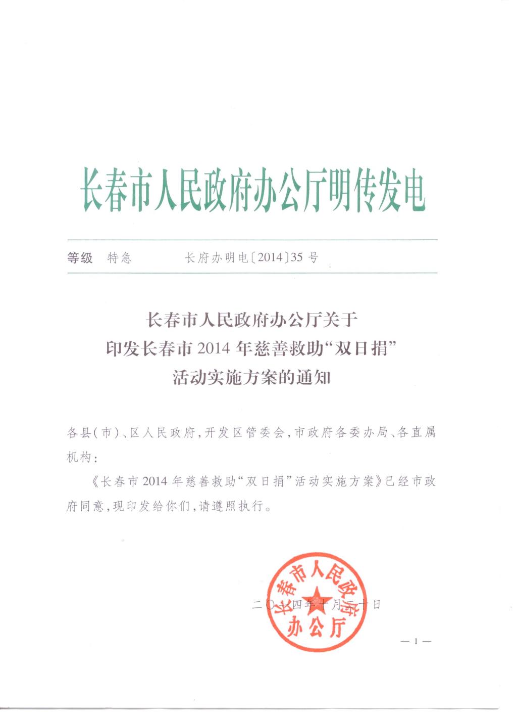 附件:长春市人民政府关于印发长春市2014年慈善救助“双日捐”活动实施方案的通知