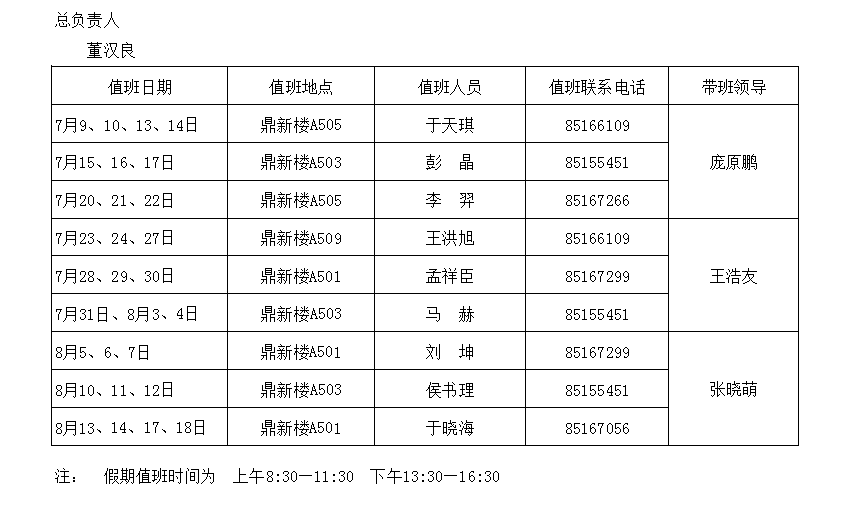 社会科学处2020年暑假值班表