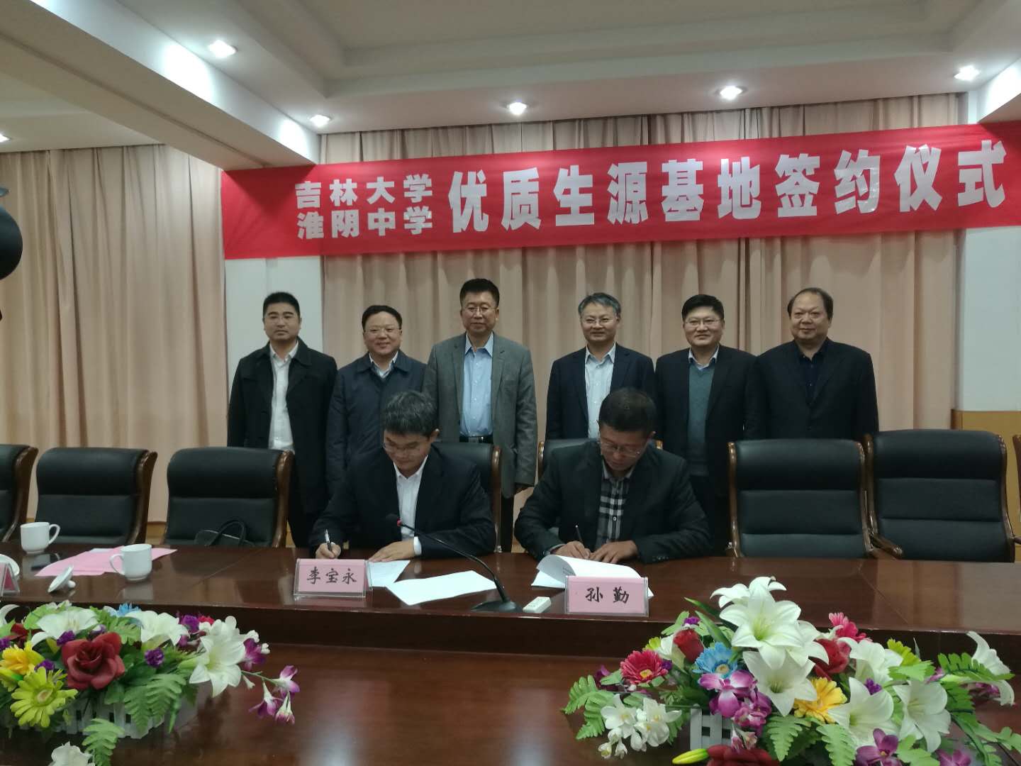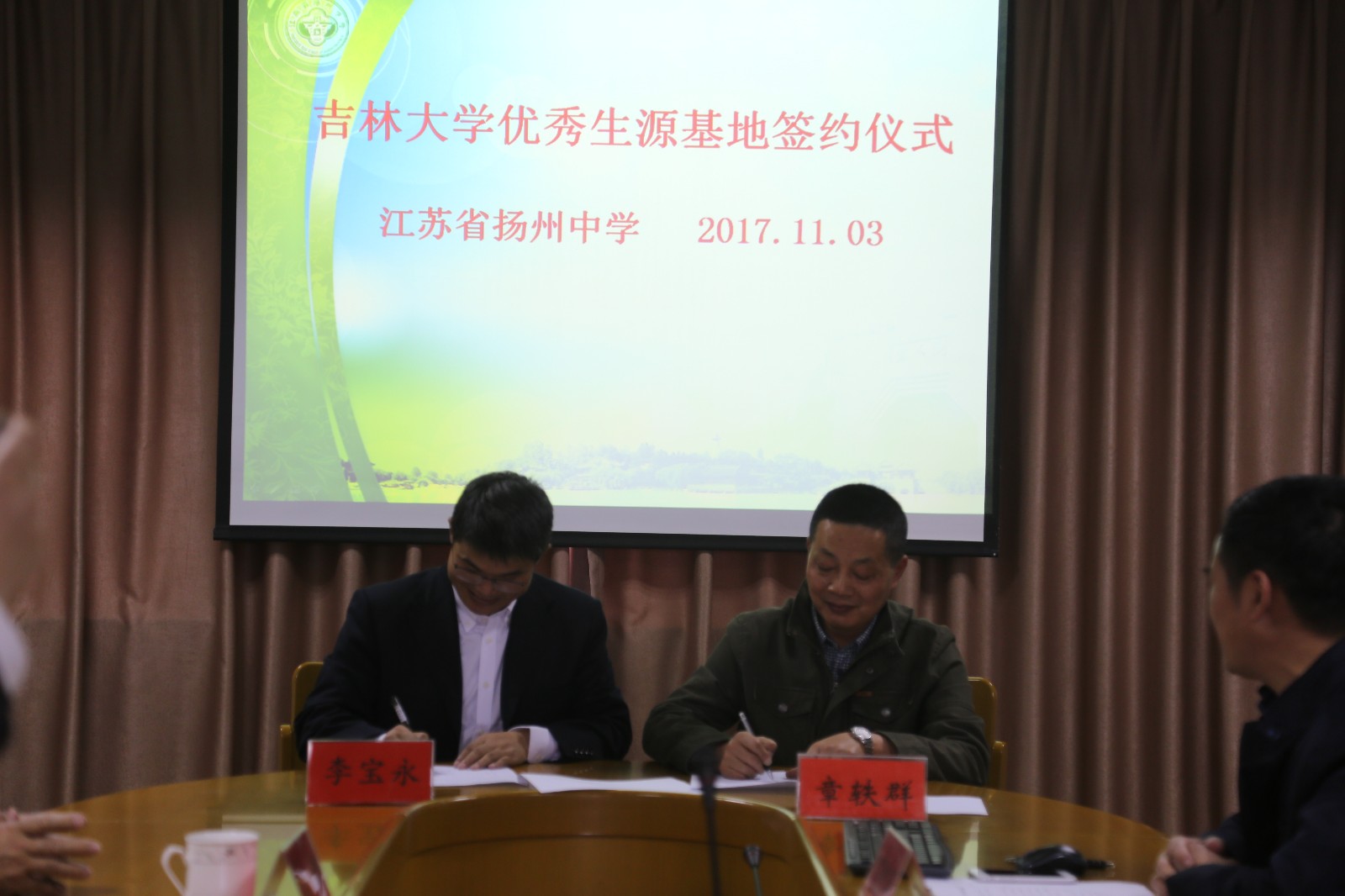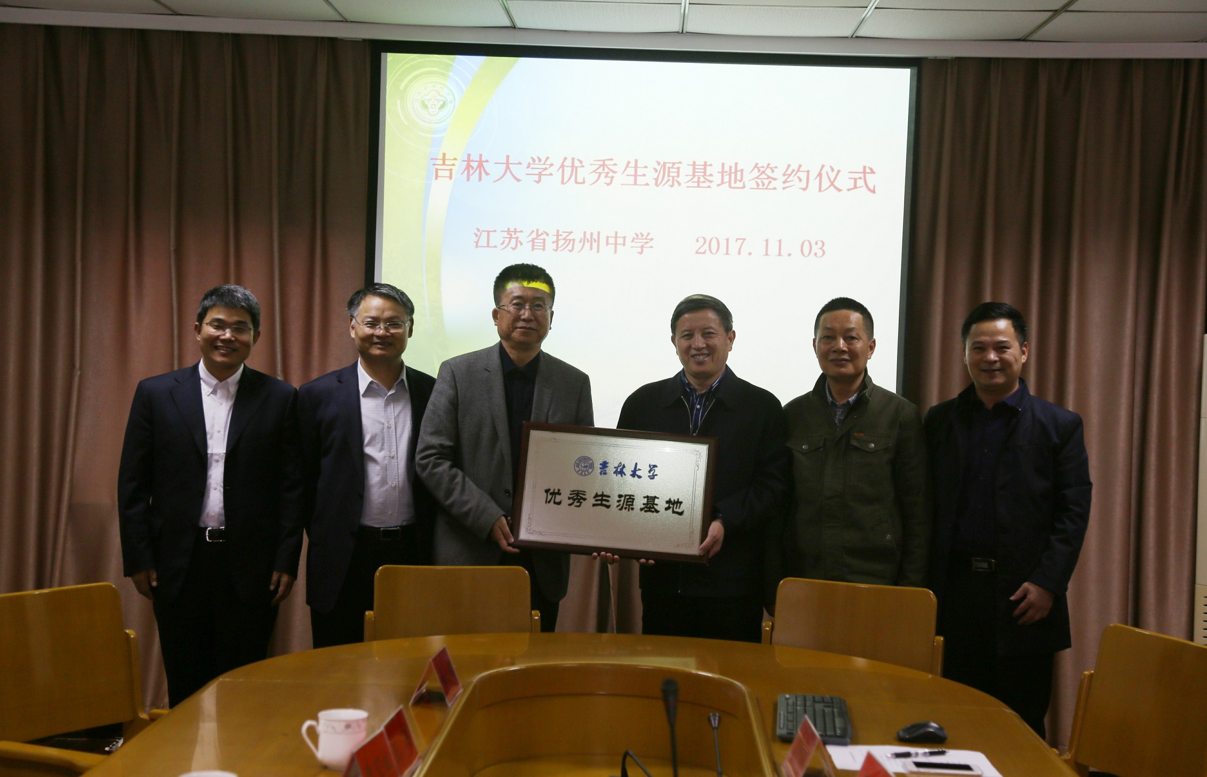 11月3日至4日,吉林大学优秀生源基地挂牌暨共建合作协议签署仪式分别在江苏省扬州中学、淮阴中学举行。我校研究生院常务副院长崔田、研究生院副院长兼学位办主任王剑、招生办主任李宝永、当地教育局领导、两所中学部分领导班子成员及高三年级班主任等参加了签约仪式。