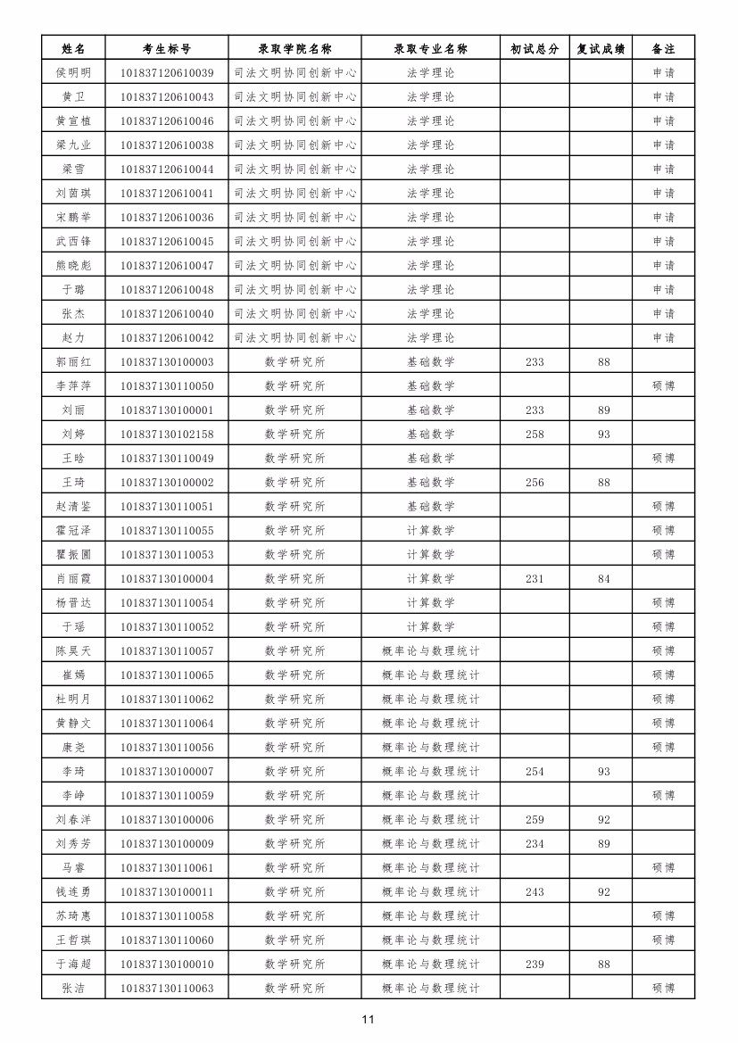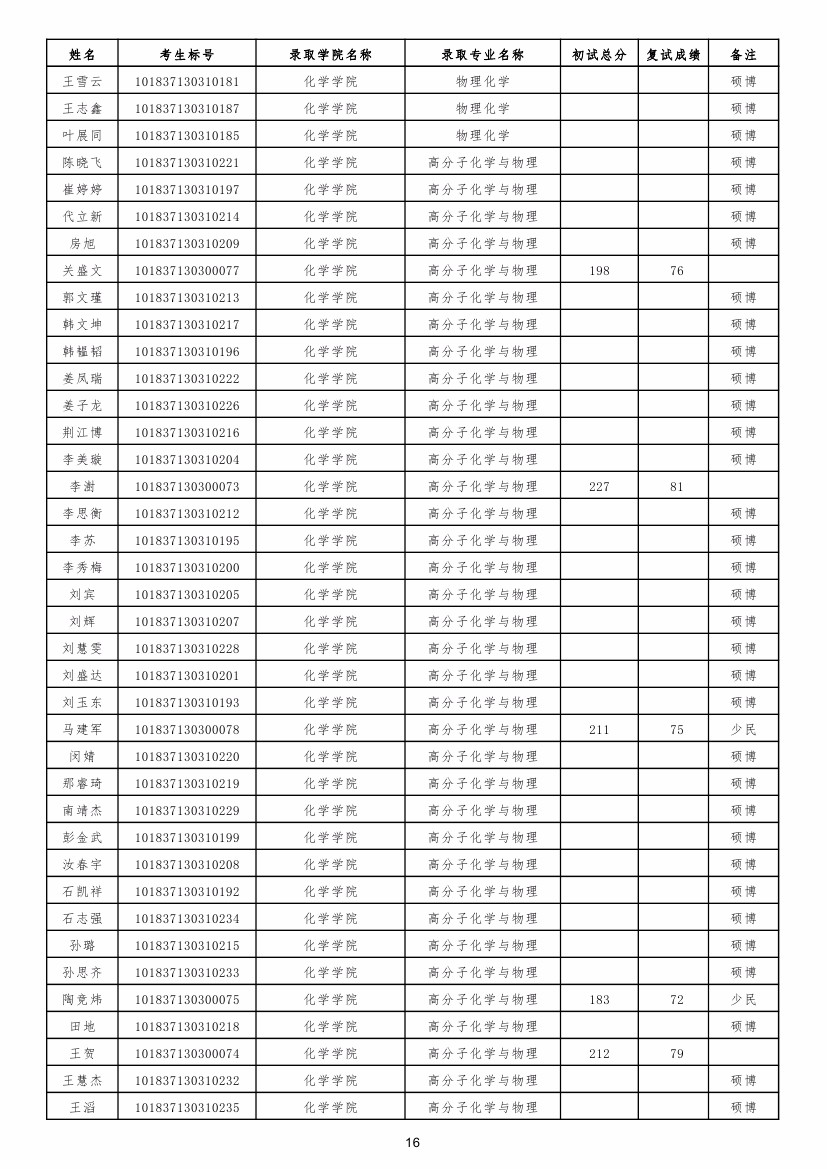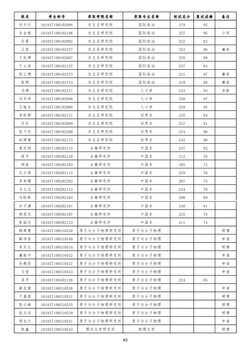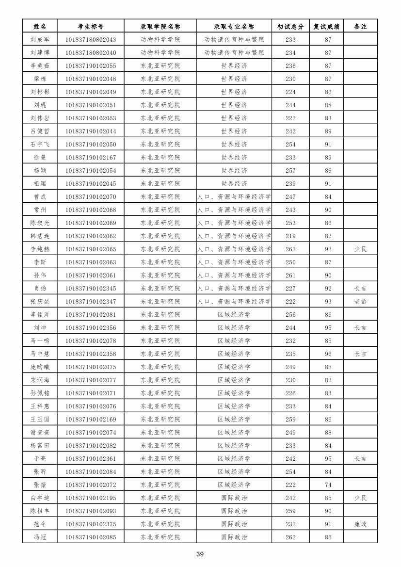吉林大学2017年博士研究生招生工作已经结束,根据教育部及《吉林大学2017年博士研究生招生简章及专业目录》的相关规定,经过学院(中心)组织专家组审查和考核,现将我校拟录取名单予以公示(见附件),公示期为2017年6月9日至2017年6月29日如有异议,请于公示期内向吉林大学招生办公室、纪委办公室反映。对弄虚作假者,一经查实,按有关规定取消录取资格。