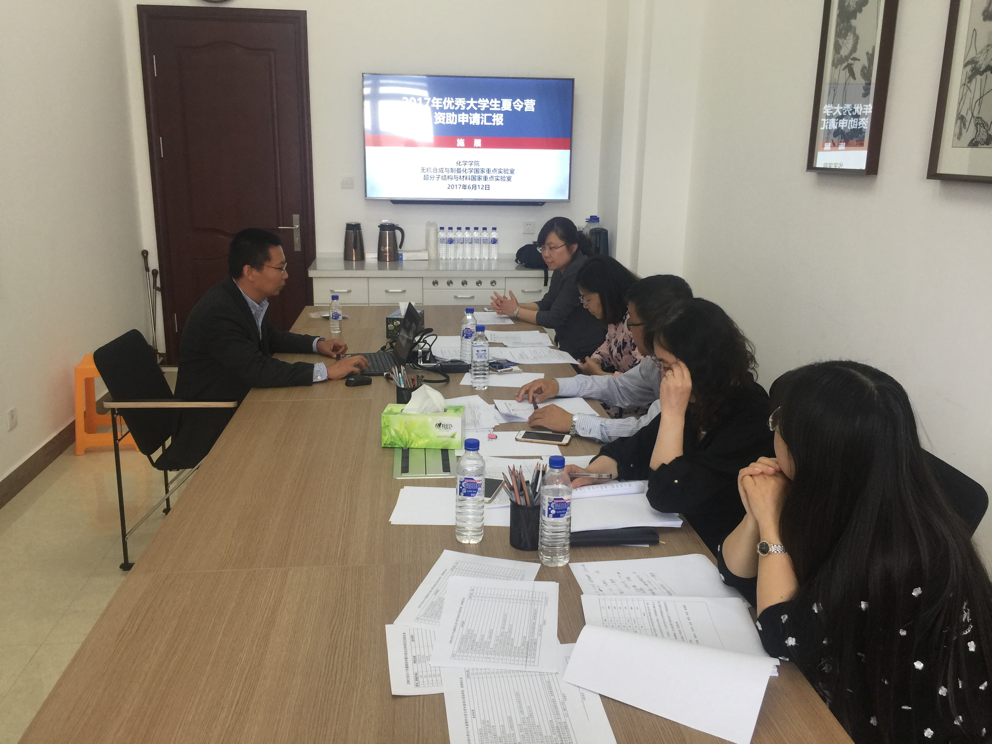 “2017年优秀大学生学术夏令营”项目资助评审会于6月12日在鼎新楼A区406室顺利召开。文学院徐萍教授、宣传部韩月波副部长、研究生培养办公室胡春平副主任、教务处教务科夏滨科长作为评审专家出席了答辩会,招生办副主任苗英楠主持了答辩会。